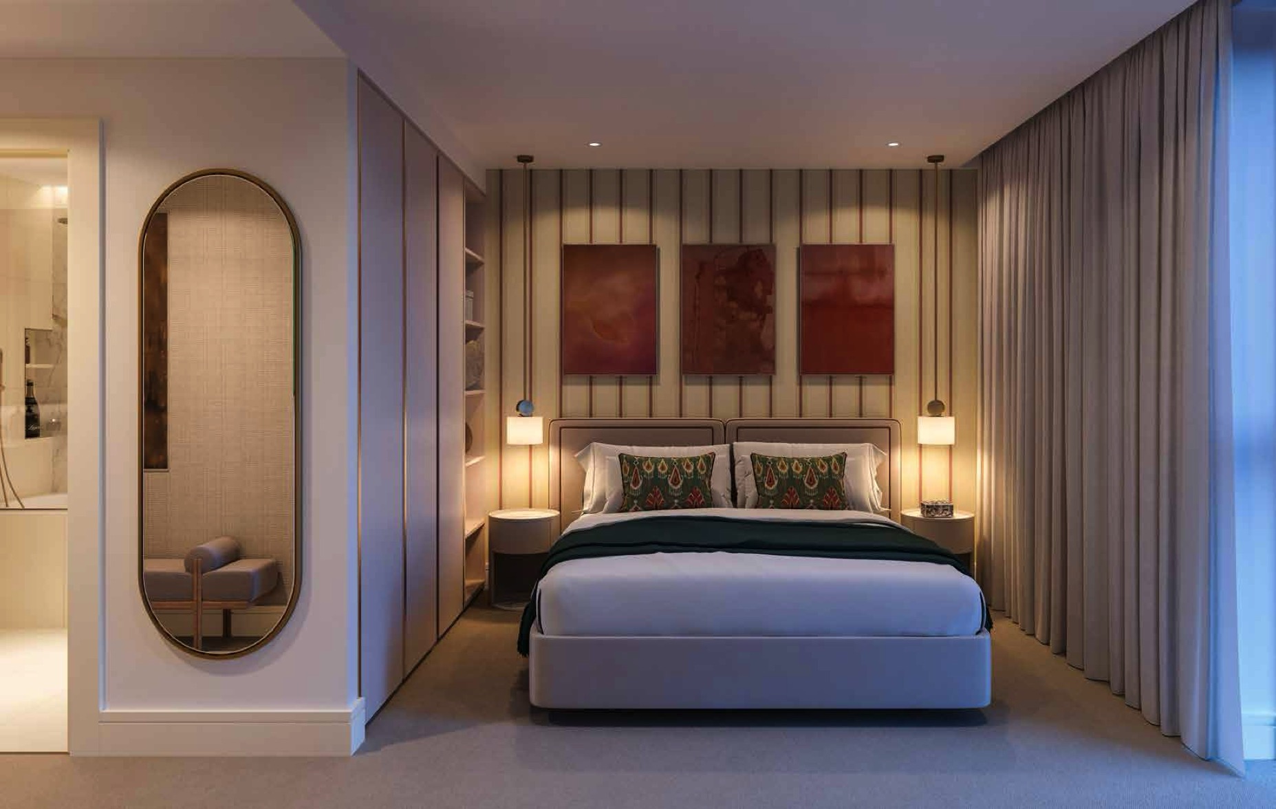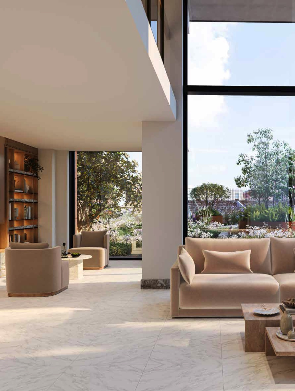 - Offers an extensive private residents' club, 'The Atrium', with a 25m swimming pool, gym, fitness studios, treatment rooms, a golf simulator, two cinemas, and co-working spaces.