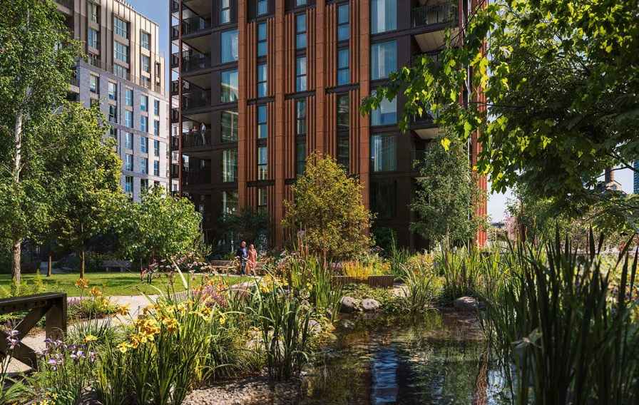 - Set within a six-acre park that includes public gardens, squares, and a restored historic gasholder as a central feature.