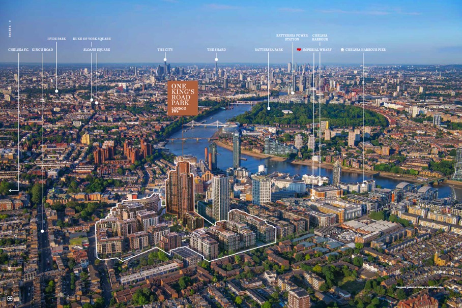 One King's Road Park is a large residential development set within a six-acre park in Fulham, London. The project features two striking towers, one of 28 storeys and another of 38 storeys, offering a collection of homes from studio suites to four-bedroom apartments. The development is built around a central park which includes a restored 19th-century gasholder, now a water feature called the Mirror Garden. It is designed to provide a substantial amount of private, resident-only amenities alongside the green space, aiming to combine park-side living with a high level of service and convenience in a well-connected part of London.