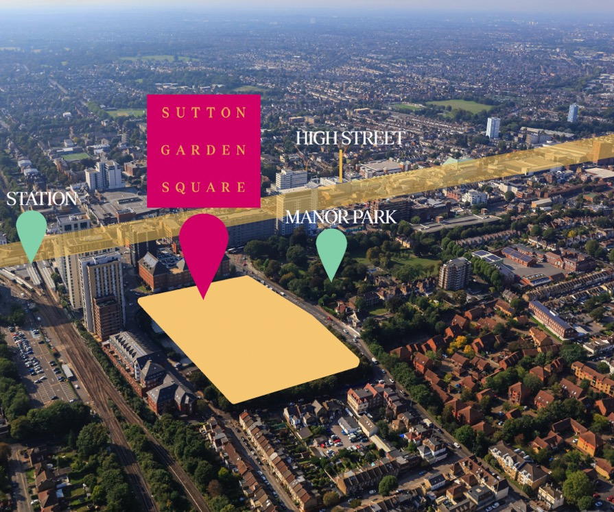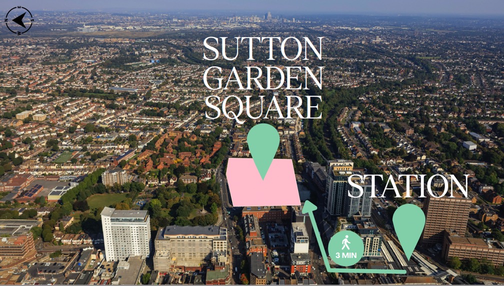 Sutton Garden Square is a new residential development in Sutton, south London, being brought forward by Berkeley Group. The site is less than a minute from Sutton High Street, adjacent to Manor Park, and around three minutes from Sutton Station, which puts central London roughly 30 minutes away. The borough is one of London's safest, has strong schools including five top grammar schools, and is home to a community – all key draws for families and investors.